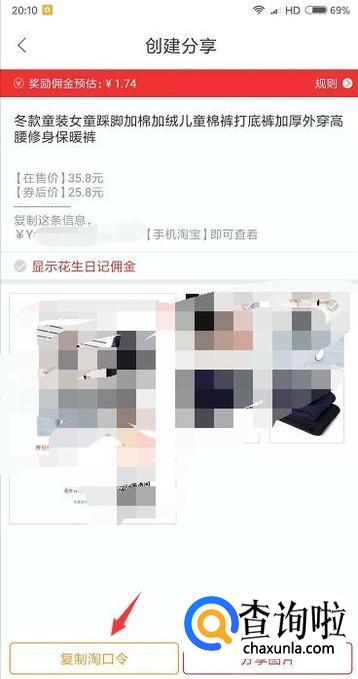 点击分享进行淘口令的复制,再打开淘宝就可以领取隐藏的优惠券了。