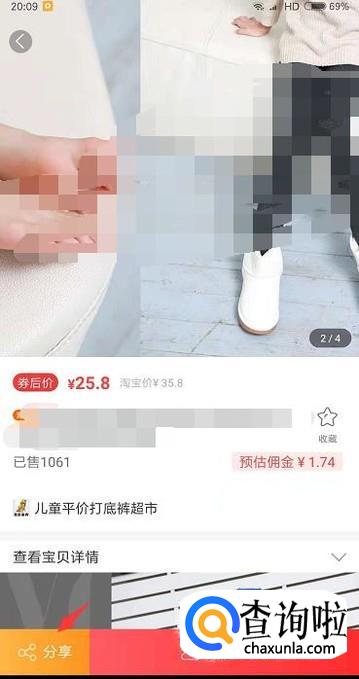 进入到商品详情后左下角有分享功能。
