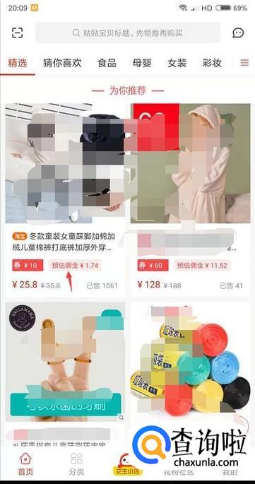 打开应用后看到的商品下方会提示优惠券金额,劵后金额,点击一下。
