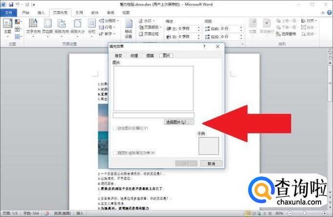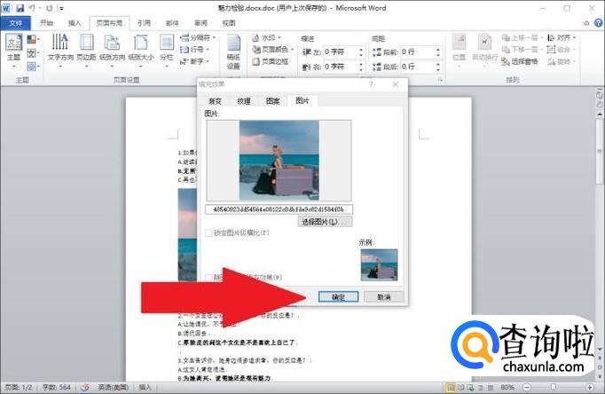 接下来点击“选择图片”按钮,从电脑中选择一张作为文档背景的图片。选择完成后,点击“确认”按钮即可。
