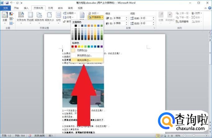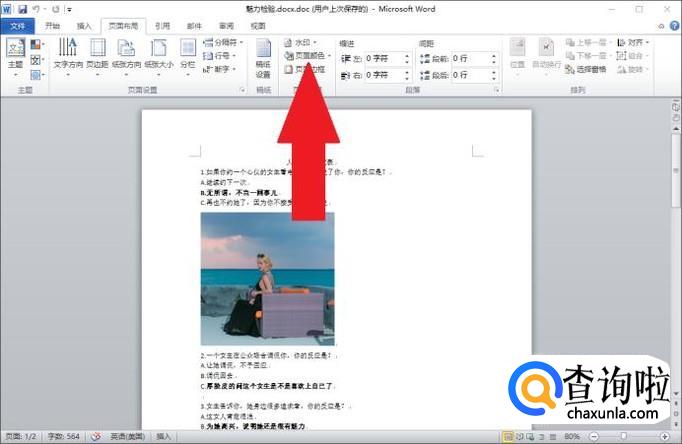 打开文档后,首先点击进入“页面布局”选项卡下方的“页面颜色”设置选项。
