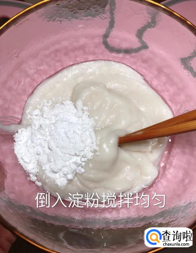 然后倒入适量的淀粉搅拌均匀,如下图所示。
