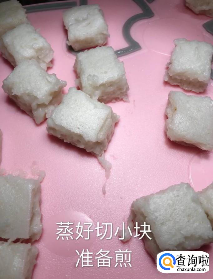 然后上锅蒸20分钟,拿出切成小块,如下图所示。