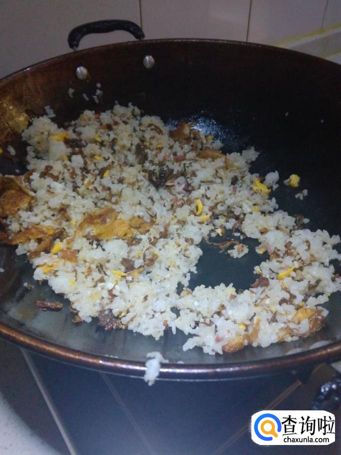 炒饭熟后,不要再加盐了,因为芽菜本身就有咸味,加盐后炒出的饭会比较咸,难以下口。