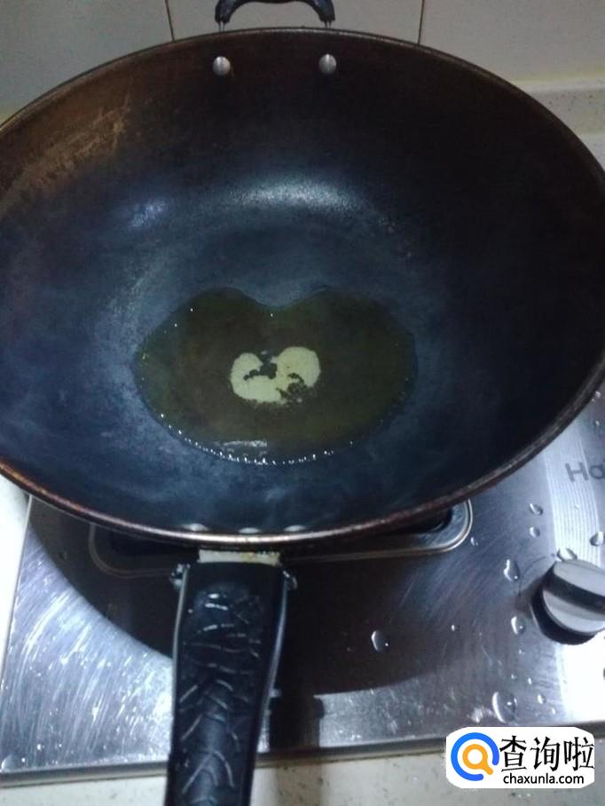 接着将油倒入锅里,将油烧滚。