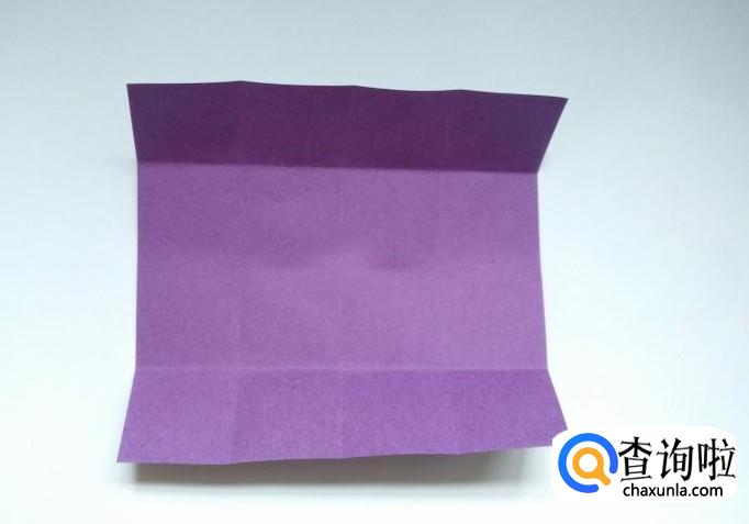 将正方形纸的上下两面分别折向中心线。