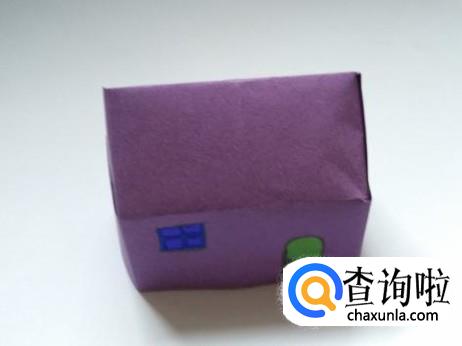 另一面也按上面的方法抹上胶后粘好,然后在前面画上彩色的大门和窗户,立体小房子就折好了。