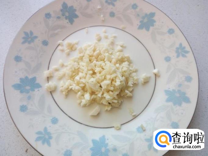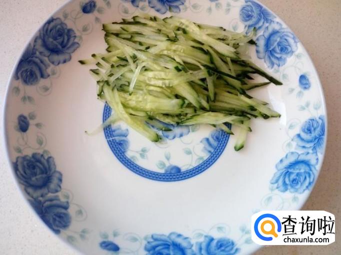 黄瓜用水洗净,切成细丝。蒜剁成碎末,备用。