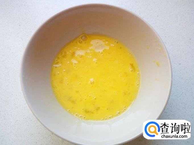 锅内放少许油,不粘锅底即可,把鸡蛋液倒入锅中,小火煎塌成薄饼。