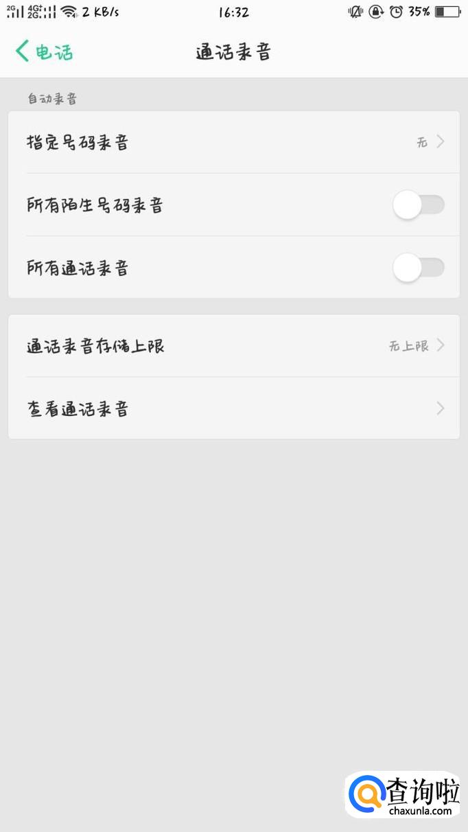 在此可对自动录音功能进行设置,例如录音的指定号码和对象,并且可以查看已录音的通话。