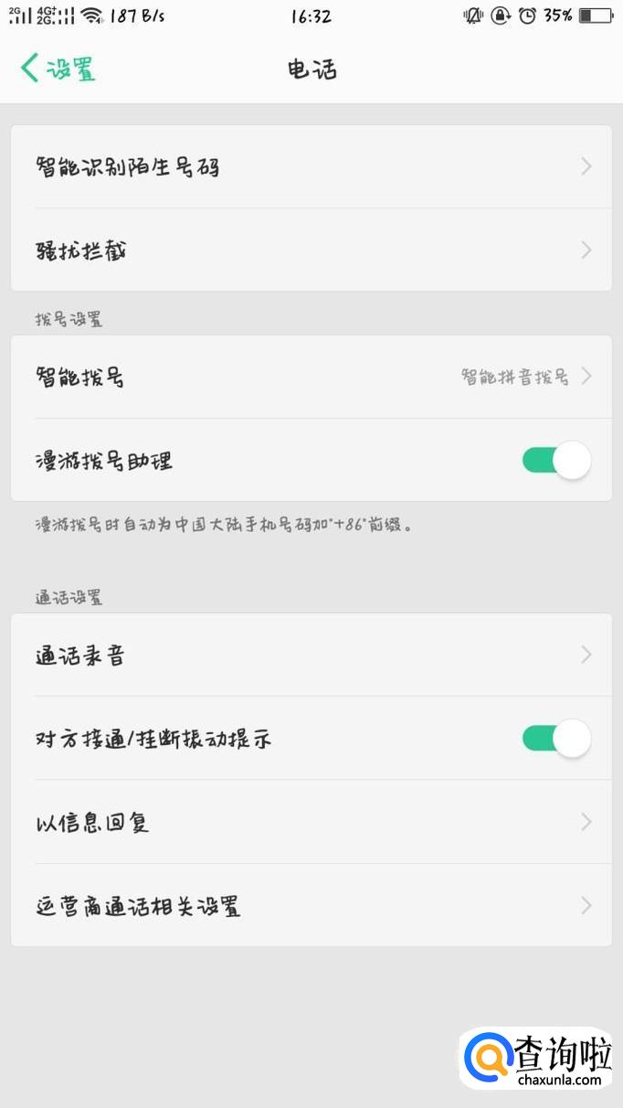 进入设置后,找到“电话”选项,对有关电话的设置都在此。