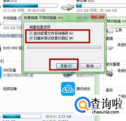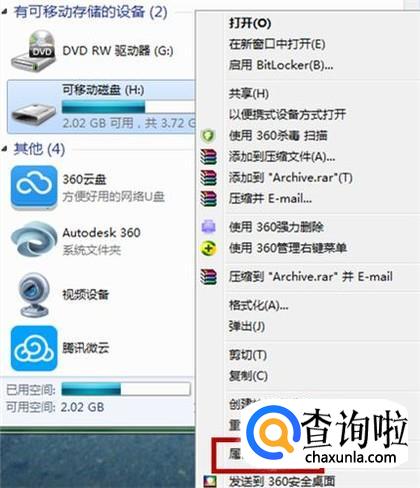 打开电脑,找到内存卡所在位置,鼠标右键单击,然后选择“属性”:属性---工具。