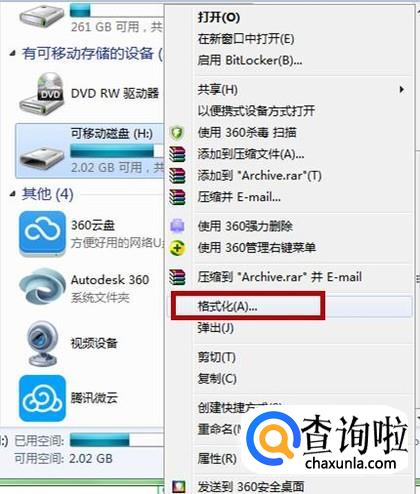 上述步骤完成后,如果这时内存卡还没有修复好,这时点击鼠标右键,选择“格式化”,格式化完成,再进行上述步骤即可。