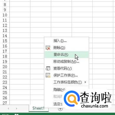 我们再看工作表底下这里,这里显示着:sheet1;这是工作表名称,这是默认的工作表名称,其名称,我们是可以自定义的。鼠标右击工作表名,弹出菜单中再点”重命名“;然后再输入你想要的名称即可。