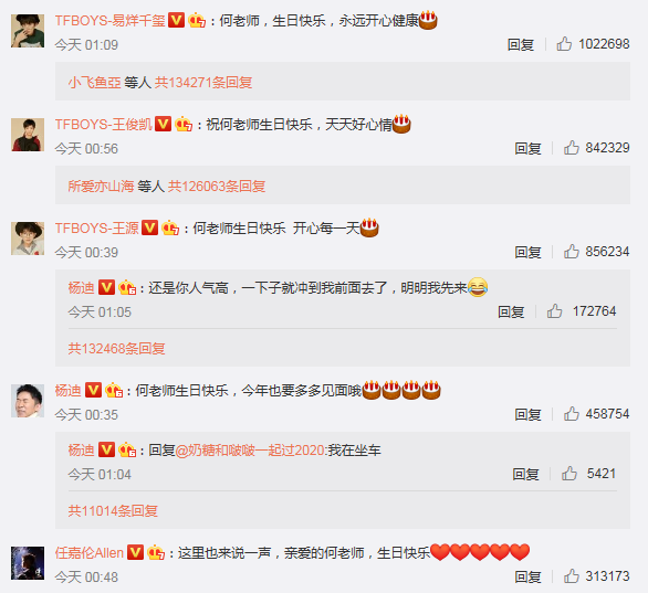 只要是艺人,都想上榜单,不管是演技榜单,唱功榜单,票房榜单,收视率榜单,销量榜单,还是人气榜单,因为这代表大众对自己的认可。很少有人知道“何榜”是什么,“何榜”就是指何炅的微博评论榜单,每年何炅过生日,都会有很多流量明星在下面评论,粉丝为了让自己的偶像的微博出现在前排,就疯狂点赞。