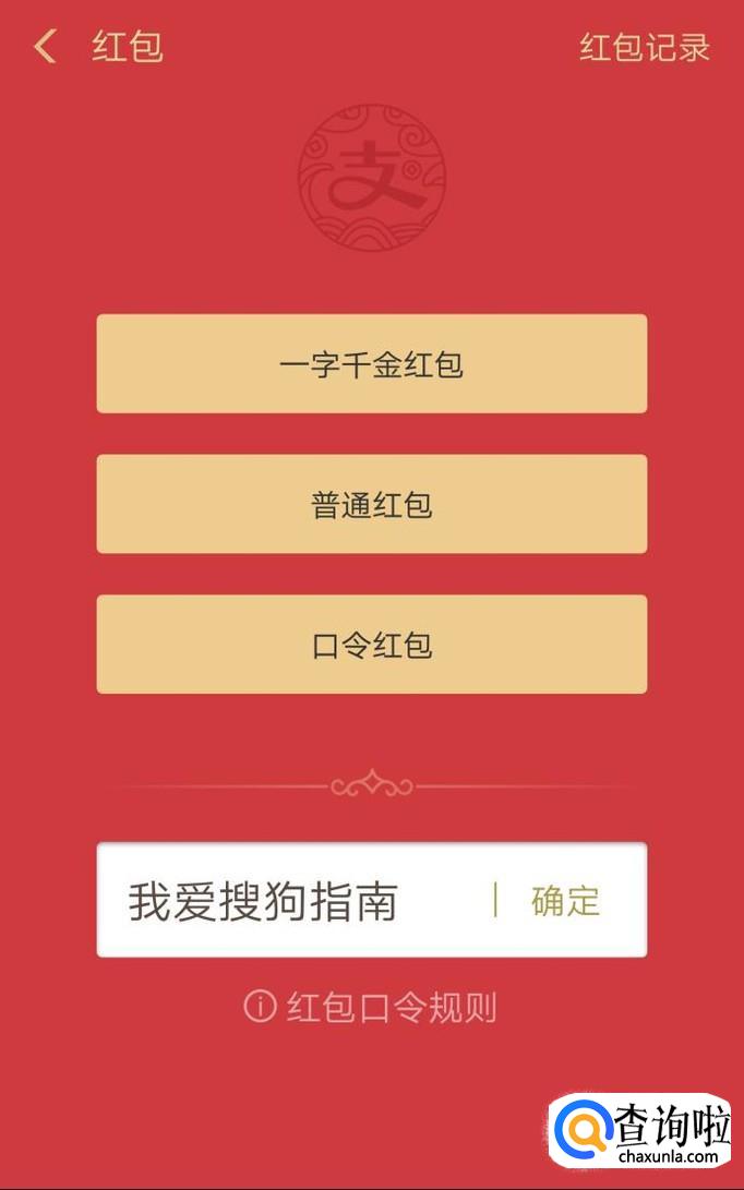 在最下栏输入你获得的支付宝红包口令,输入支付宝口令之后,点击右边的确定按钮。