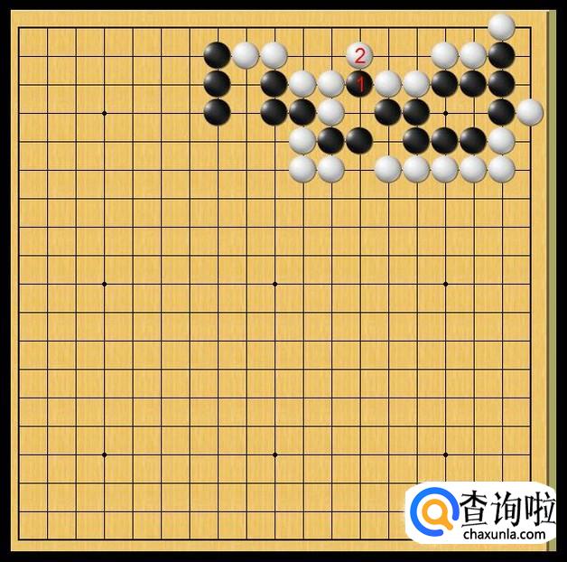 白棋立刻在白2处挡,把黑1挡在白棋底边外,防止黑棋冲进白棋腹地。同时,白2叫吃黑1。如图所示。