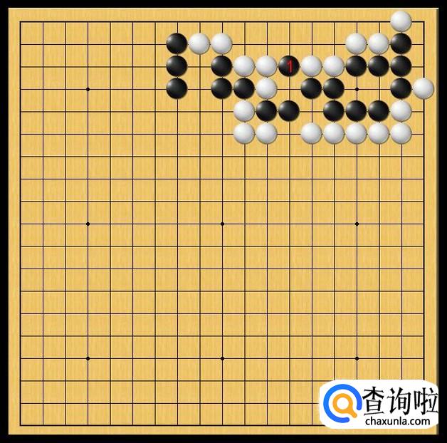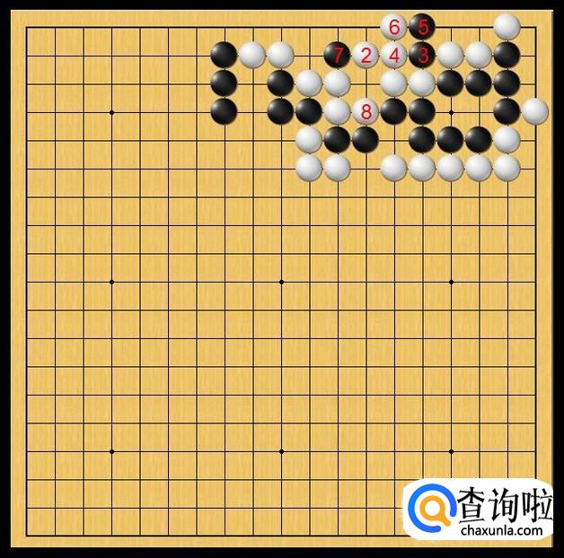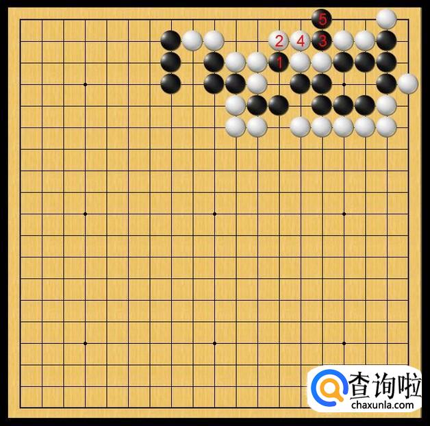黑棋又在黑5处立,黑5的立完全是针对白棋右上角底线白二子来的。黑棋通过黑5的立,为打吃白棋右上角底线白二子创造了条件。如图所示。