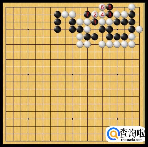就在这个时候,黑棋在黑7处落子打吃白棋底边的白五子。如图所示。