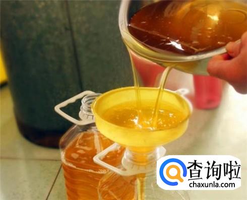 这个时候的花生油已经榨出来了,但是不可以吃的,一定要经过过滤这道工序,只需要耐心等待就可以,过滤之后装瓶或者直接用大桶装起来,那些过滤下来的油渣也会装进别的桶里。