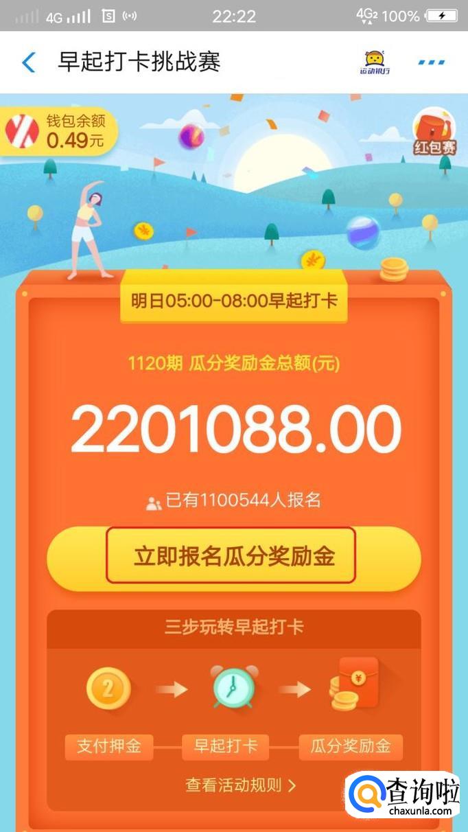 支付宝现在推出了早起打卡活动,支付2元保证金,只要能做到早起打卡成功,就能得到2元之外的额外奖励。下面我就来讲讲支付宝早起打卡挑战赛的玩法。