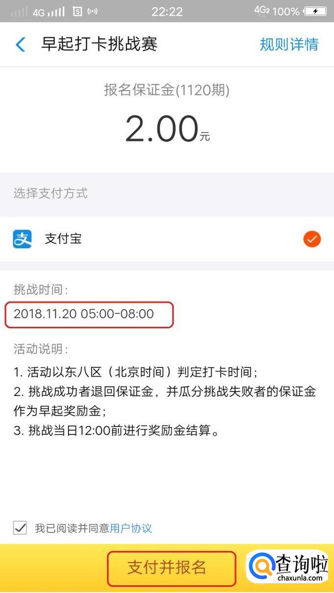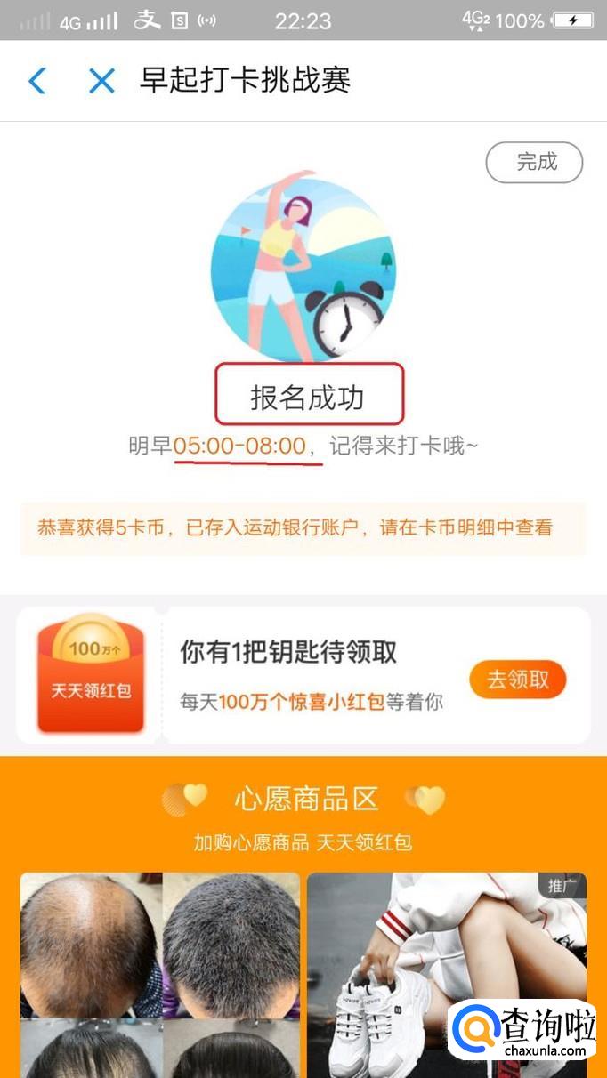 支付完成后,报名就成功了,一定要记得明早5点到8点之间打卡哦,否则你的保证金就打水漂啦!