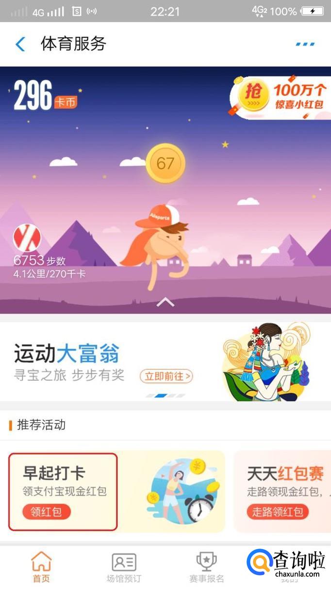 进入体育服务后,就可以看到“早起打卡”活动了,如图所示,我们点击一下进入。