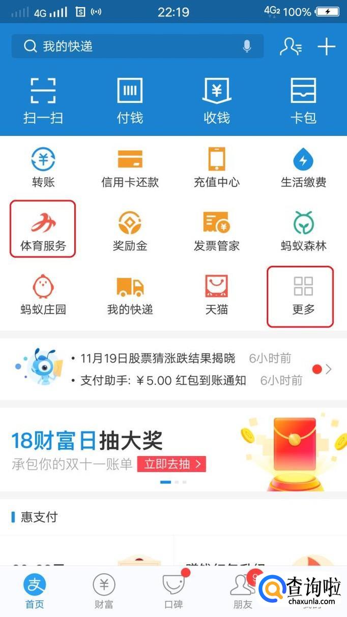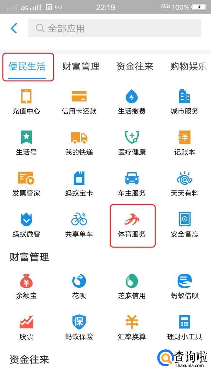 首先,我们打开手机支付宝,找到“体育服务”图标(没参加过的朋友需要点击“更多”,在“便民生活”中找到)。