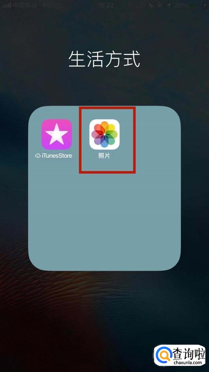 首先在我们的手机桌面上找到照片并点击它,如下图所示。
