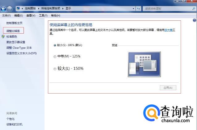 然后就可以调整桌面文本显示比例,点击分辨率即可以进入屏幕分辨率页面。