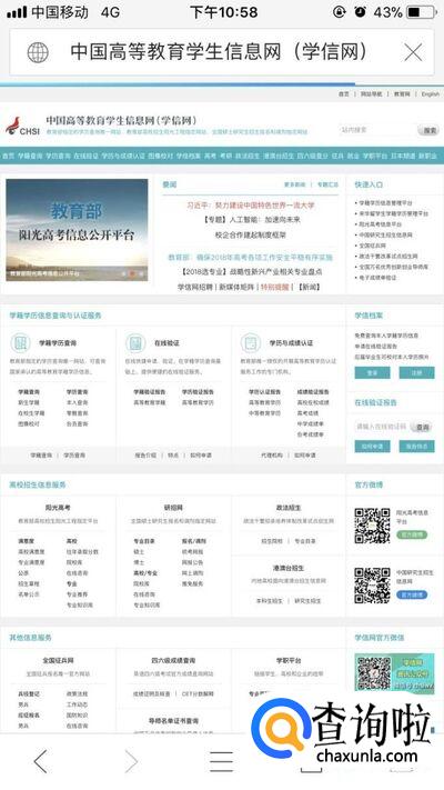 登入进去后进入到主界面就有学历学籍查询,还可以查询更加详细的信息。