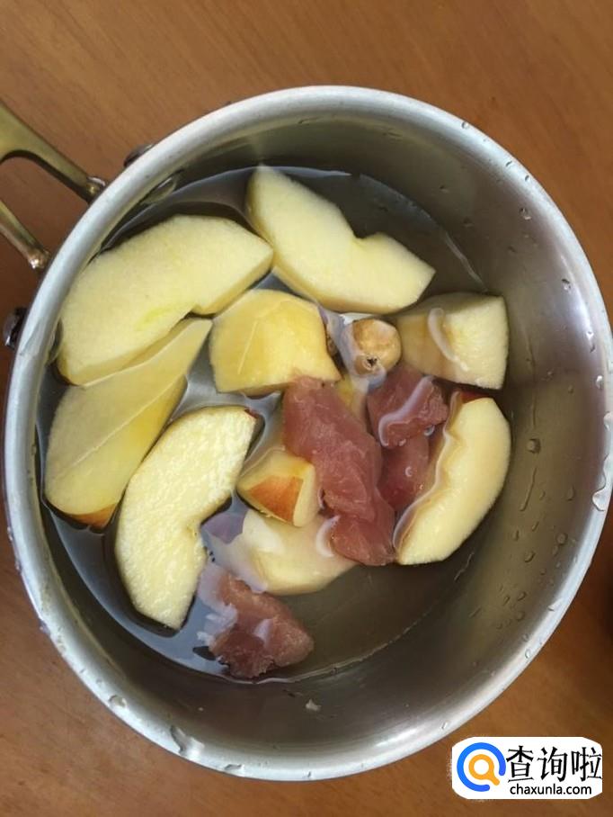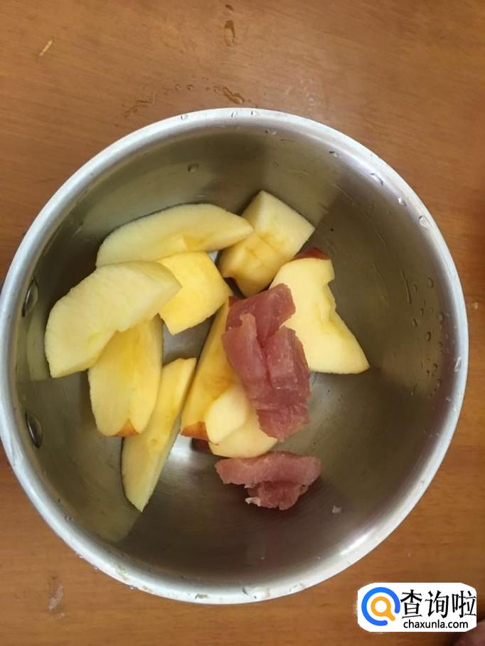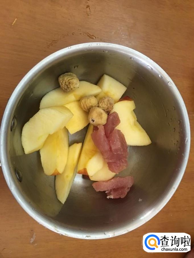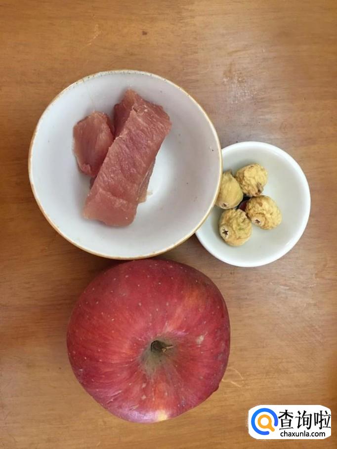 1,苹果1个 2,瘦肉适量 3,无花果4颗 4,盐少许