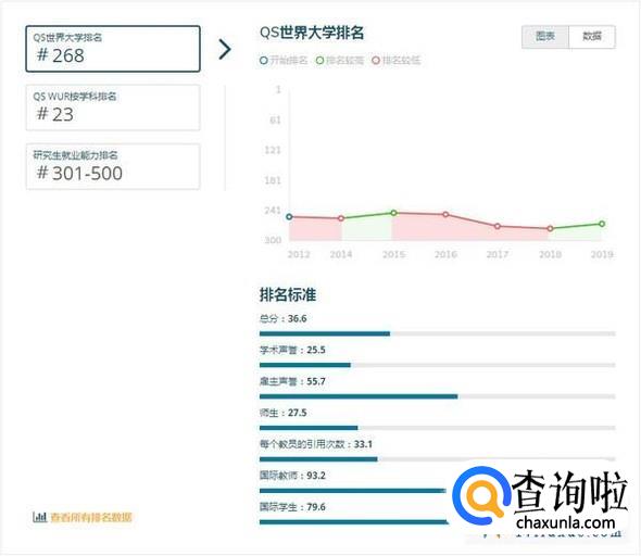 注:QS世界大学排名是世界公认最具影响力的全球性大学排名之一,主要评价指标为:学术领域的同行评价(40%)、全球雇主评价(10%)、单位教职的论文引用数(20%)、教师/学生比例(20%)、国际学生比例(5%)、国际教师比例(5%)