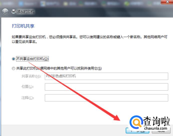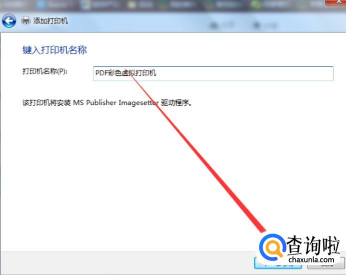 输入打印机名字“PDF彩色虚拟打印机”,点击下一步。