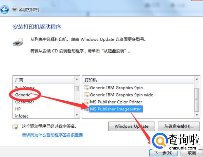 厂商选择“generic”,设备点击设备选“MS Publisher imagesetter”。