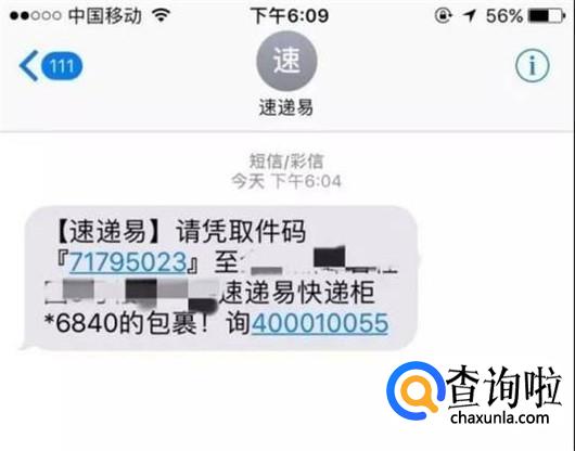 快递柜忘记密码后可以找下手机短信,一般情况下快递都会把取件码发到手机上,见下图