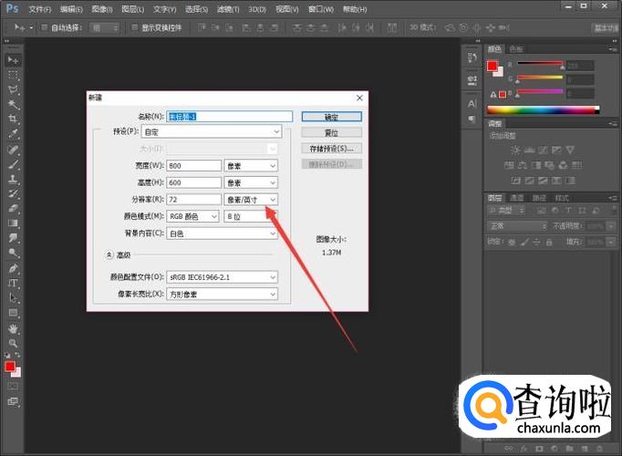 弹出新建对话框,我们新建一个800*600像素,白色画布,点击确定