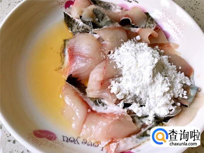 把切成的黑鱼片放入少许盐,料酒,淀粉搅拌均匀腌制15分钟
