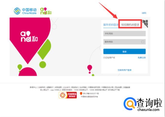 可以使用【服务密码登录】,也可以选择【短信随机码登录】,小编在这儿选的是【短信随机码登录】。