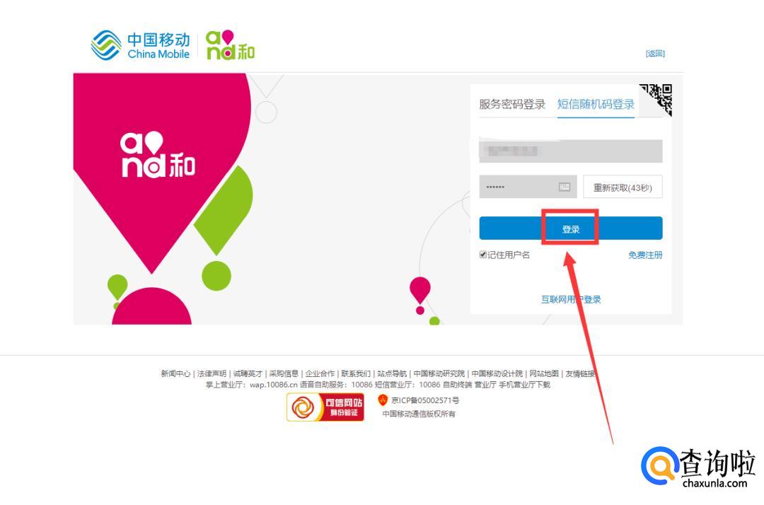 然后我们输入自己的手机号码,等待一会儿输入自己的短信验证码,然后点击记住用户名前的方框,最后点击【登录】。