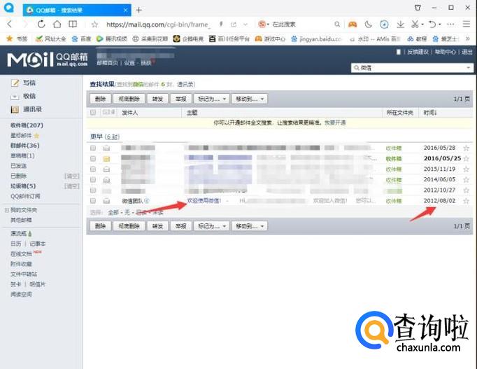 然后我们找到邮件主题为欢迎使用微信的邮件,该邮件的收件时间就是微信的注册时间。