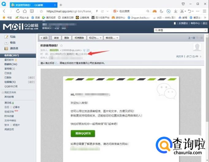 我们也可以点击该邮件,就可以查到微信注册时间了。