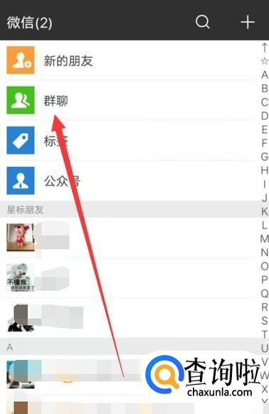 进入之后,点击“群聊”,进入下一页面,如图所示。