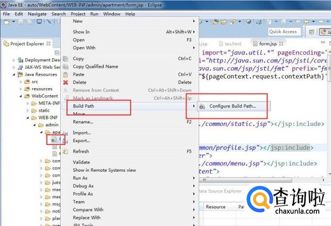 选中jsp文件,然后点击Build Path----Configure Build Path ,如下图所示: