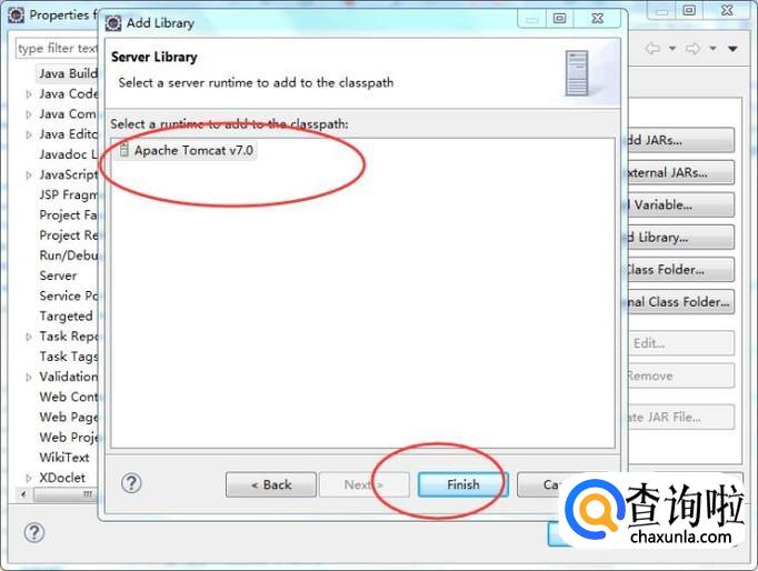 选中【Apache Tomcat v7.0】,点击【finish】,如下图所示: