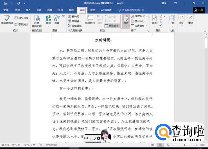 打开已经编辑好的文档,切换到"审阅"视图,开始修改正文。