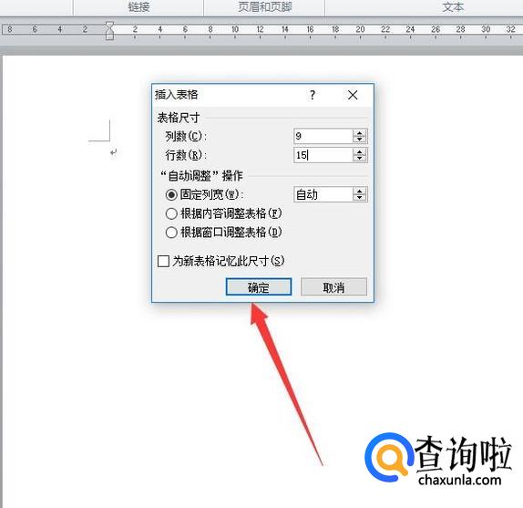 在弹出的插入表格对话框中设置行数和列数,点击“确定”,如图所示。