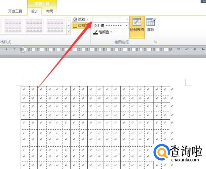 线性为虚线,在每行每列绘制直线,然后将表格设置为居中对齐即可,如图所示。