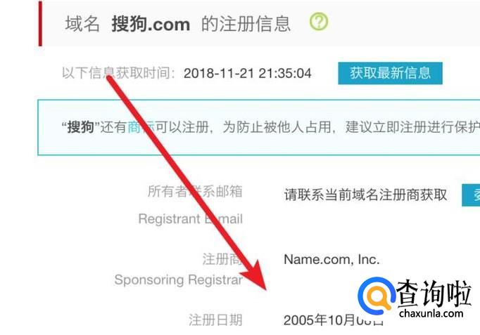 如果要查询的域名已经注册了,就可以看到相关的注册信息了。