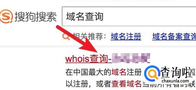 打开搜狗搜索,输入‘域名查询’,点击打开第一个站点。